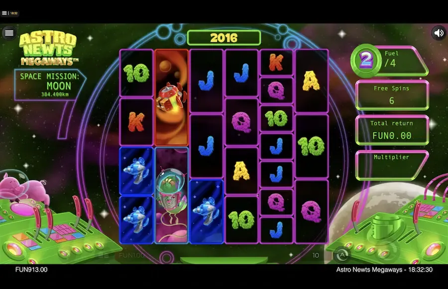 Landing scatter symbols triggers the Free Spins feature. During free spins, cascading reels remain active while multipliers increase on consecutive wins, dramatically boosting payout potential. Most of the biggest wins in Astro Newts Megaways happen inside strong free spin sessions.